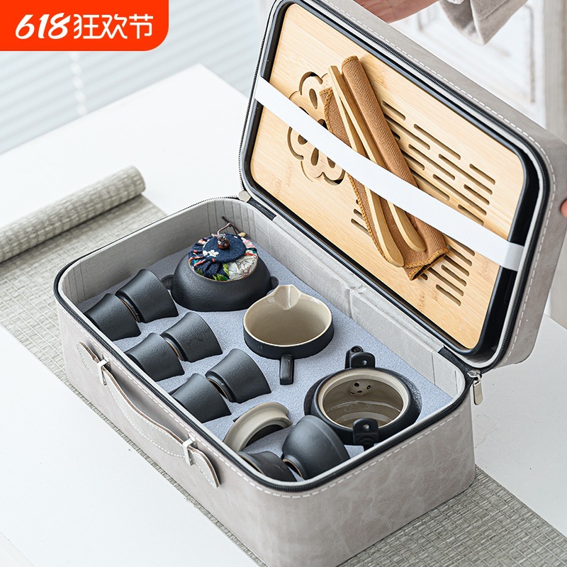 アウトドアキャンプ旅行ティーセットポータブルバッグ出張や遊び用フィールドカーセラミックカンフーティーポット