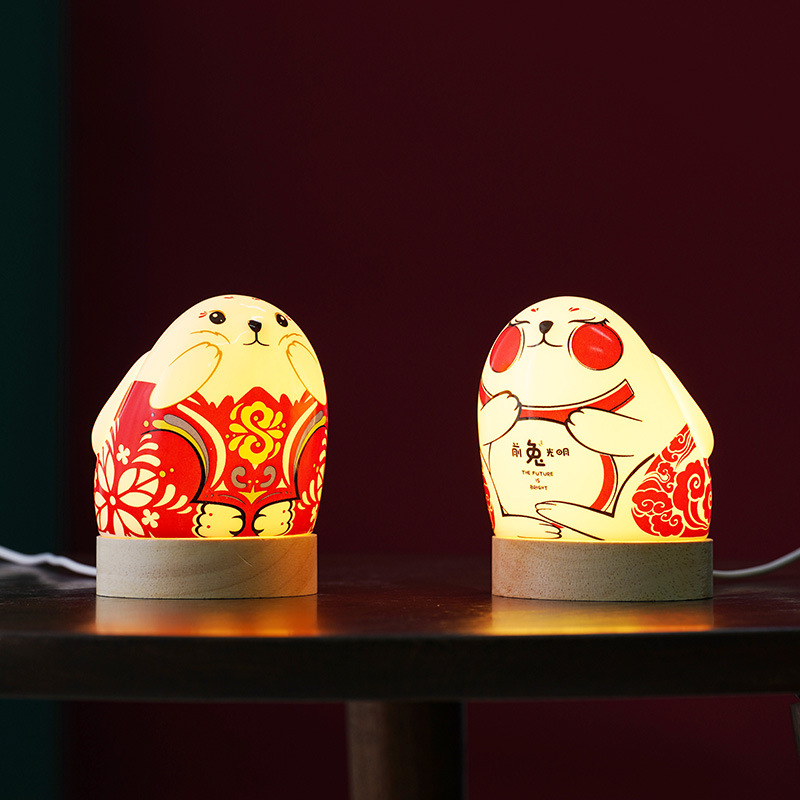 Yangu グッドスタートギフトギフトアイデア新しいマスコットウサギセラミックナイトライト貯金箱装飾品ホーム