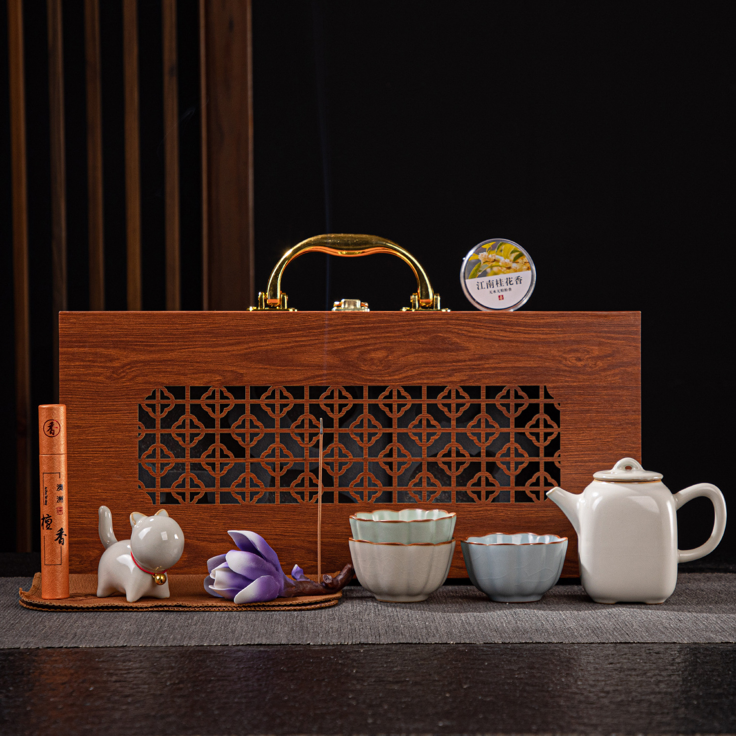 レトロ汝窯茶器、香セット、ギフトボックス、会社記念日イベント、実用的なギフト、高級記念品ロゴ
