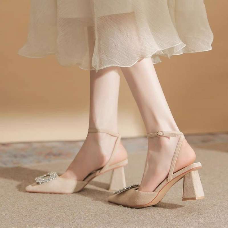 女性用ストラップ付きスカートとハイヒール、2025年新作女性用スティレットサンダル、夏用ハイヒールシューズ、ニッチなデザイン