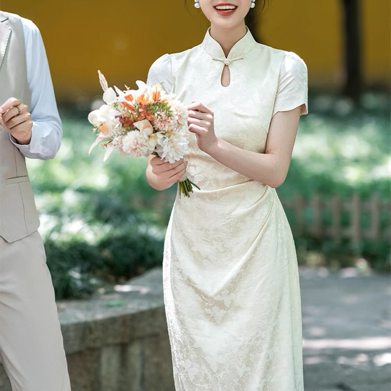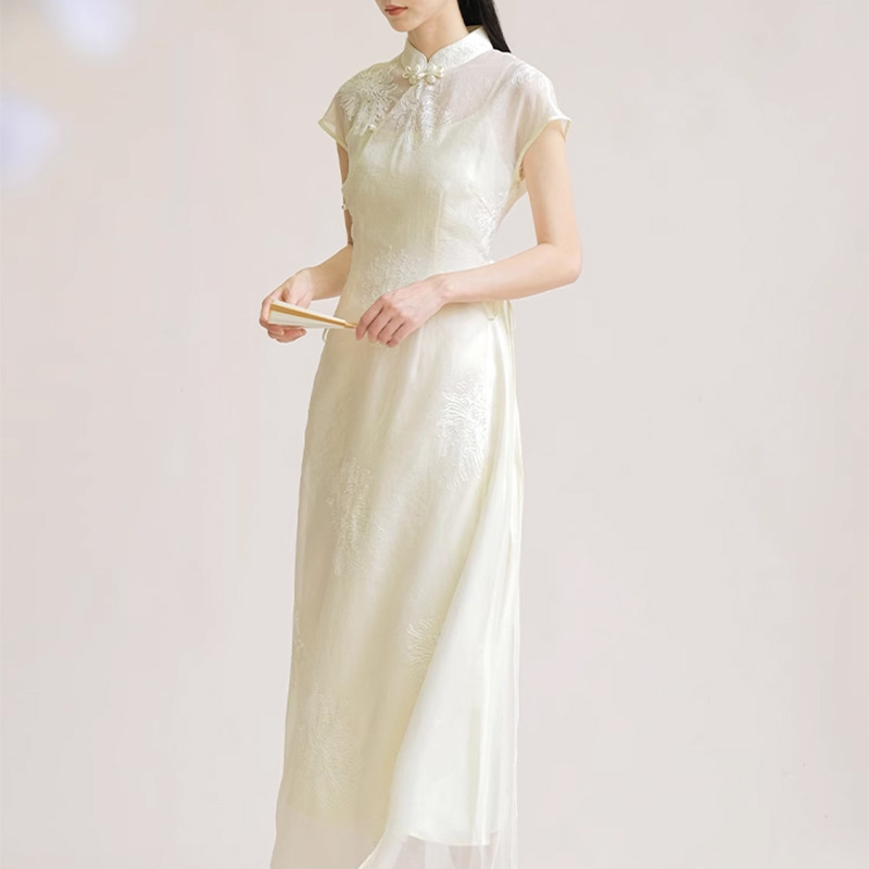Qingshuzhai 夏の新しい中国風の白い改良されたチャイナドレスの女性の婚約ドレススカート 2025 スタイルは小さな人にとって毎日着用できます