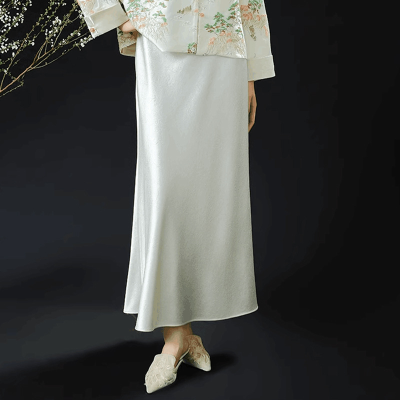 卿淑斎2025夏の新型新中国式スカート女性禅意国風復古百合暗紋エンボススカート