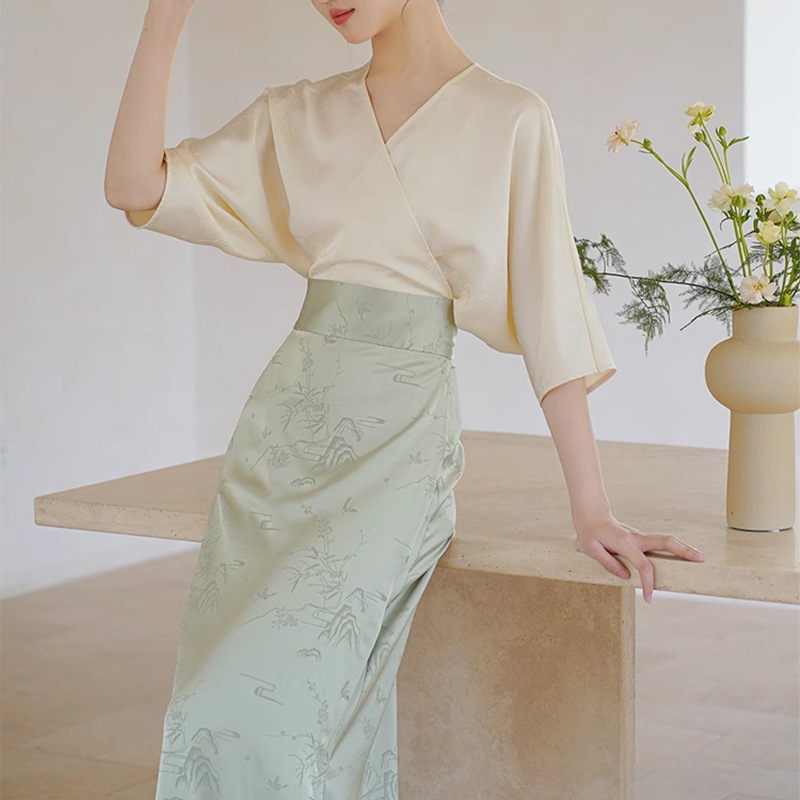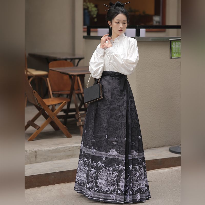 新しい中国風オリジナル馬面スカートフルセット馬面日常改良通勤プリント中国風スーツ新スタイル