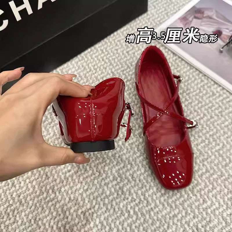 レッドクロスストラップバックルインナー高さメイリージェーンシューズ女性用2025春秋新作女の子スカート付きパテントレザーシューズ