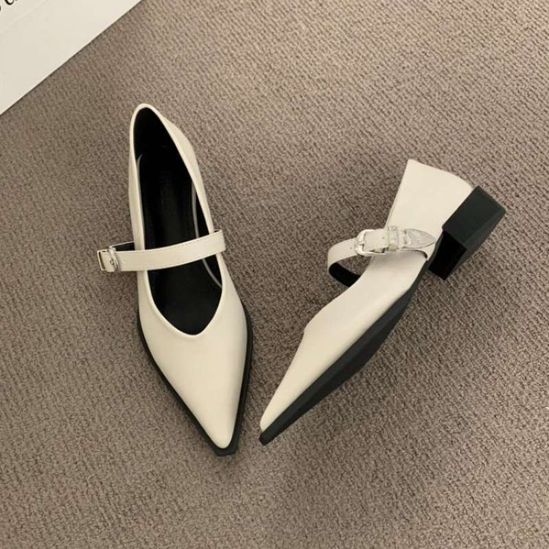 女性用スカートと靴付き 2025 秋の新作気質ポインテッドトゥ通勤婦人靴多用途フレンチメリージェーンシューズソフトレザー