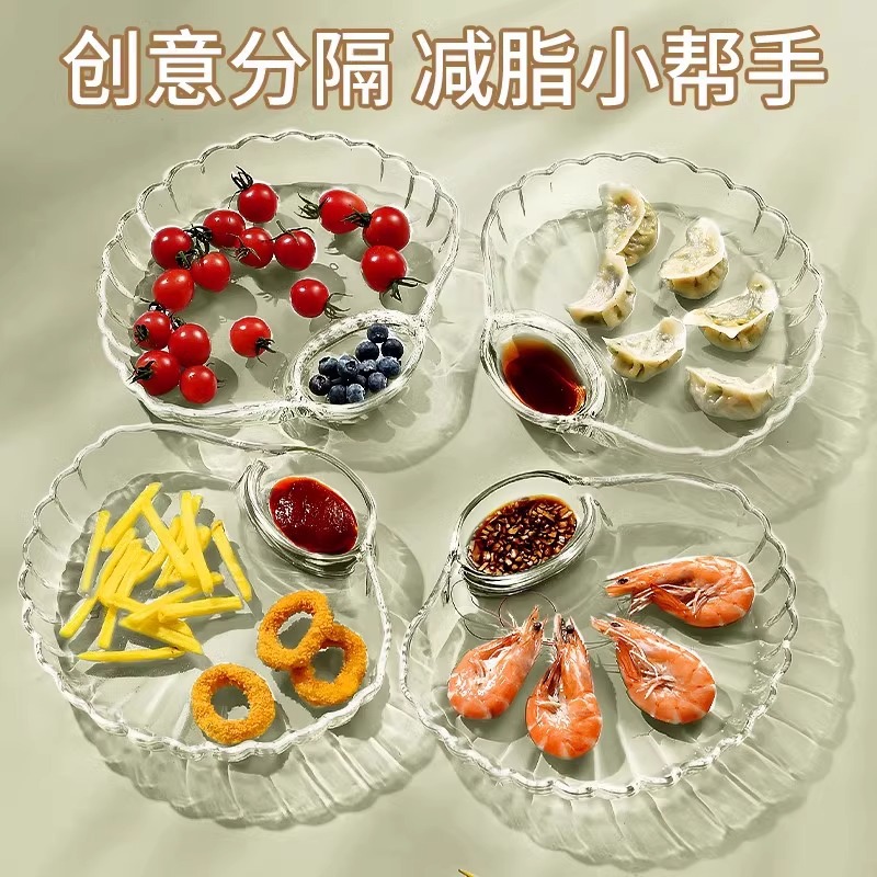 貝殻餃子皿酢皿付き家庭用ガラス水餃子皿高颜値分格貝殻料理皿クリエイティブ果物皿
