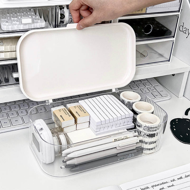 デスクトップ収納ボックス学生ins雑貨文房具ペン整理ボックスオフィス寮透明カバー付き防塵ボックス