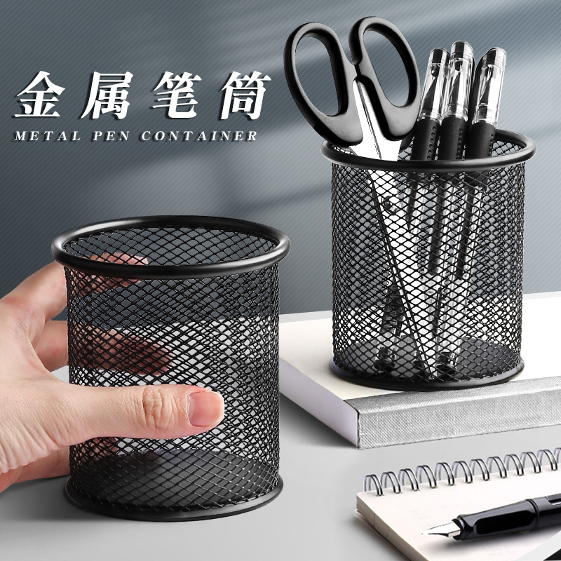 クリエイティブメタル学生ラウンドスタディ多機能デスクトップオフィスペンホルダー黒中空ペンホルダー文具収納ボックス