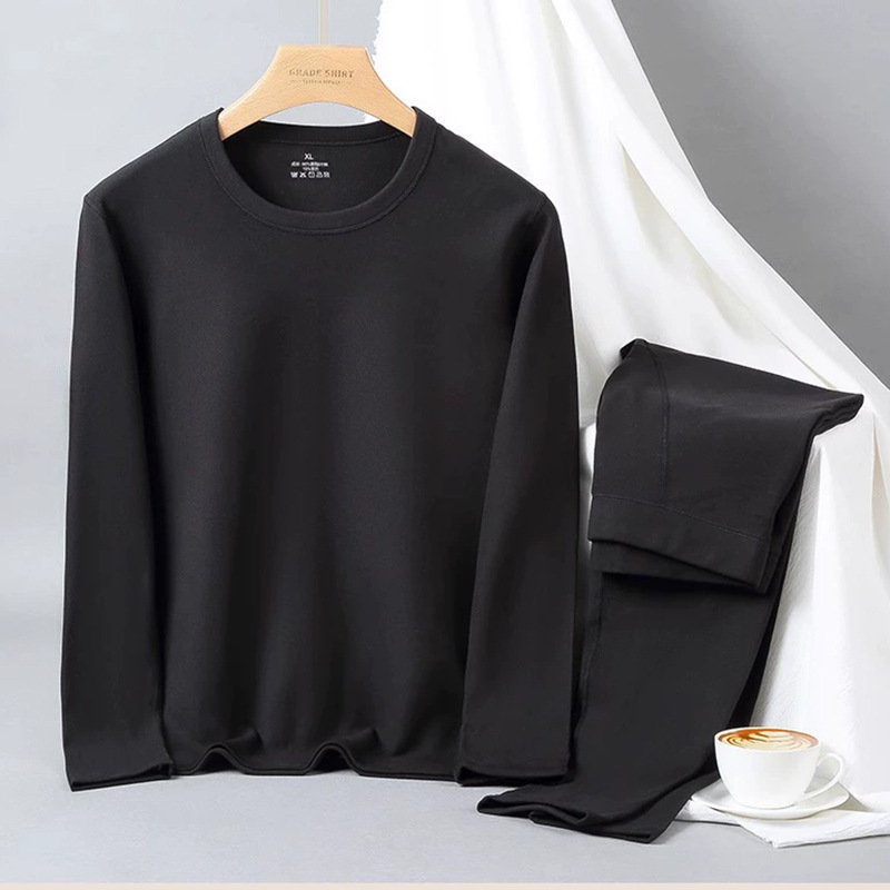 【カシミヤ絹糸】発熱徳絨毛秋冬男性保温下着男性セット加毛増厚秋衣秋ズボン