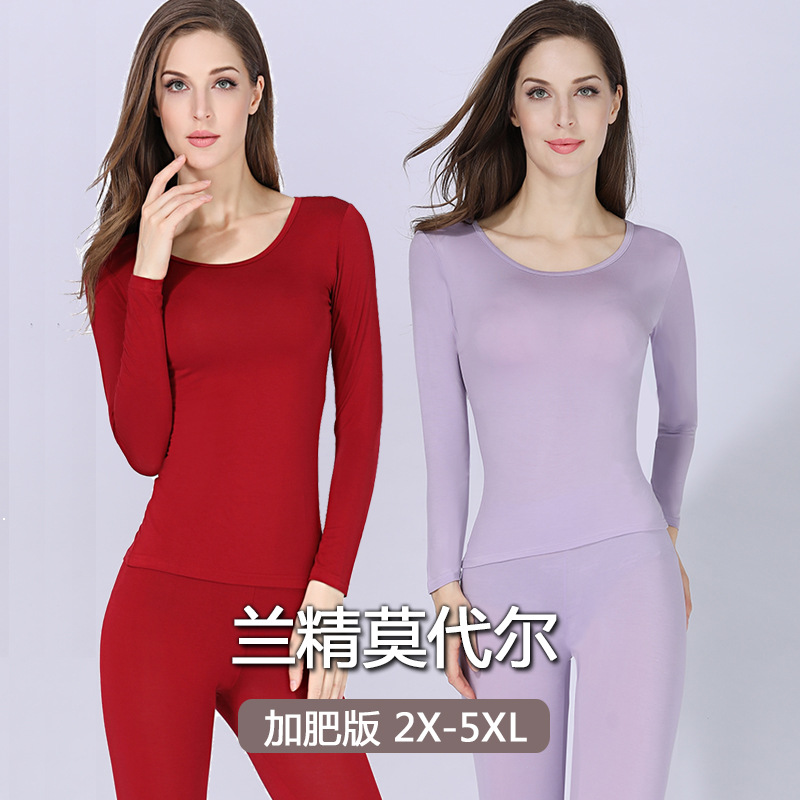 秋用下着 女性用 モダール素材 大きいサイズ 保温下着 ゆったり 薄手 綿毛衣セット ベースレイヤー シャツとパンツ