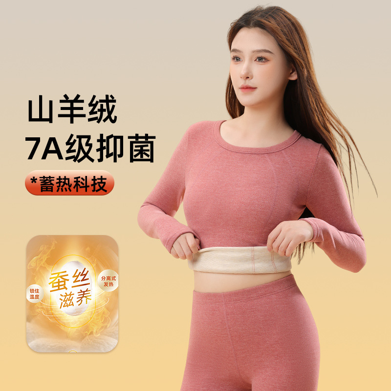德绒保暖内衣女士秋冬季加绒加厚羊绒蚕丝打底衫发热秋衣秋裤套装