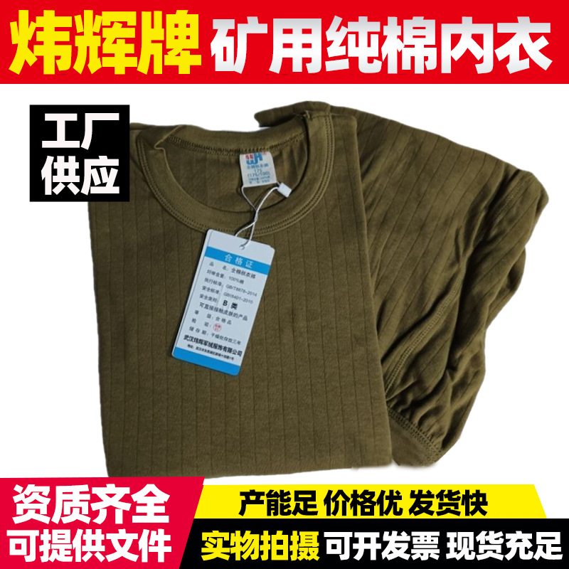 輝牌秋衣ズボンセット鉱用100% 純綿厚手静電気防止防寒炭鉱工下井下着丸襟