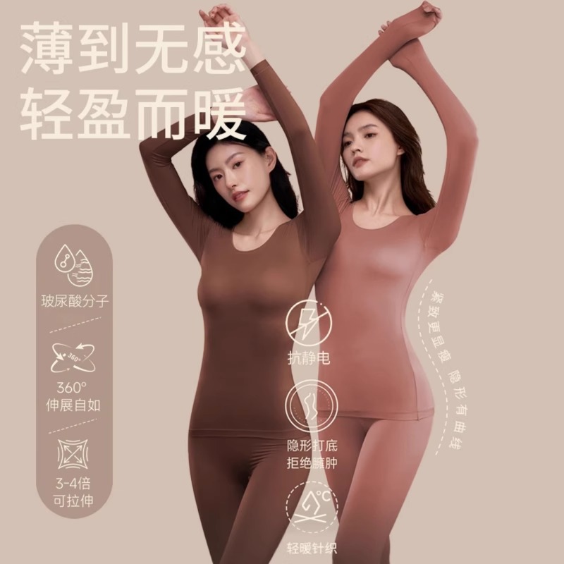ヒアルロン酸肌底美肌服高弾力超薄秋衣秋ズボンセット底速熱美体保温下着女