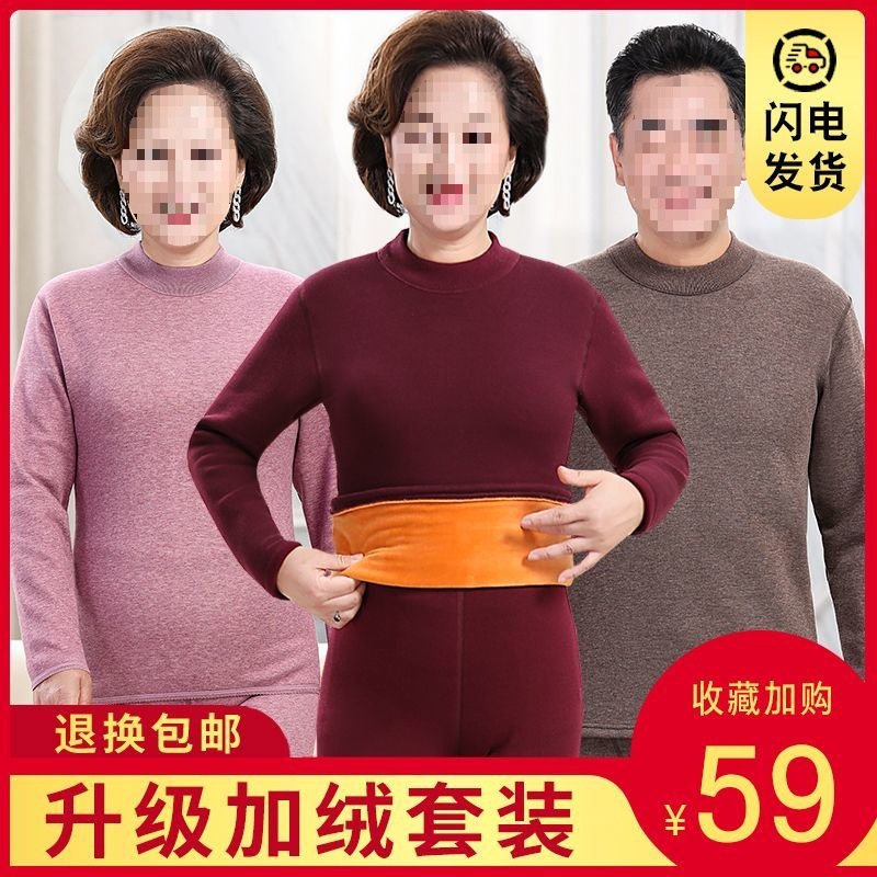高齢者保温下着女性ベルベット厚手セット母父老人保温服純綿秋衣秋ズボン