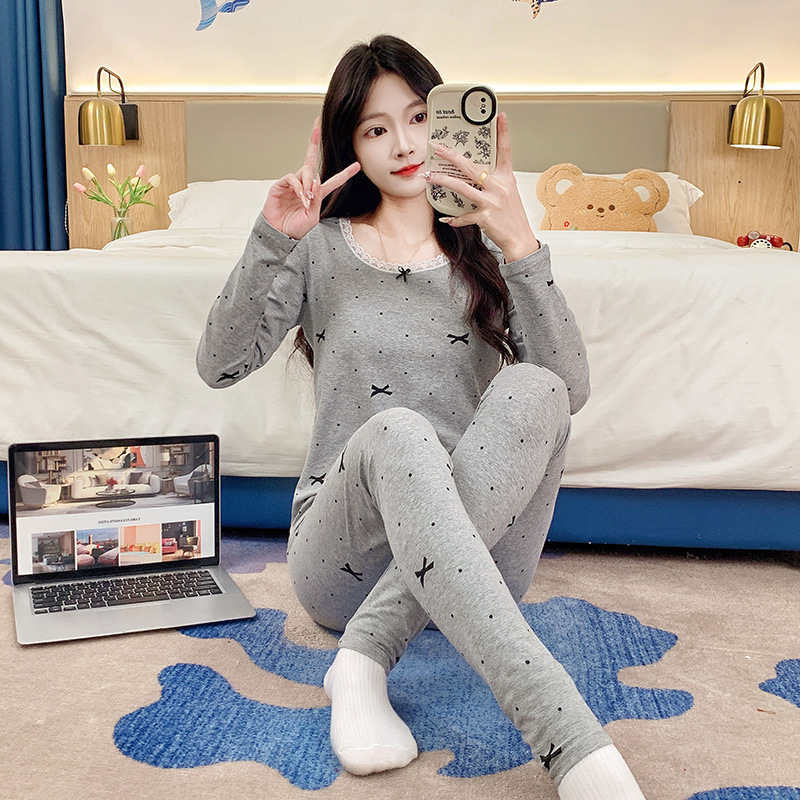 2024新型女性純綿秋衣秋ズボンセット少女学生かわいい薄手100% 綿保温下着