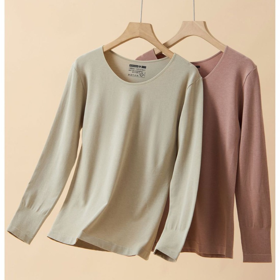 秋衣さん80本の蘭精モーデール純色シルクタンパク質丸襟冬保温下着の薄いシャツ
