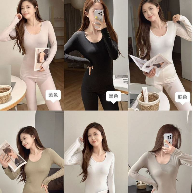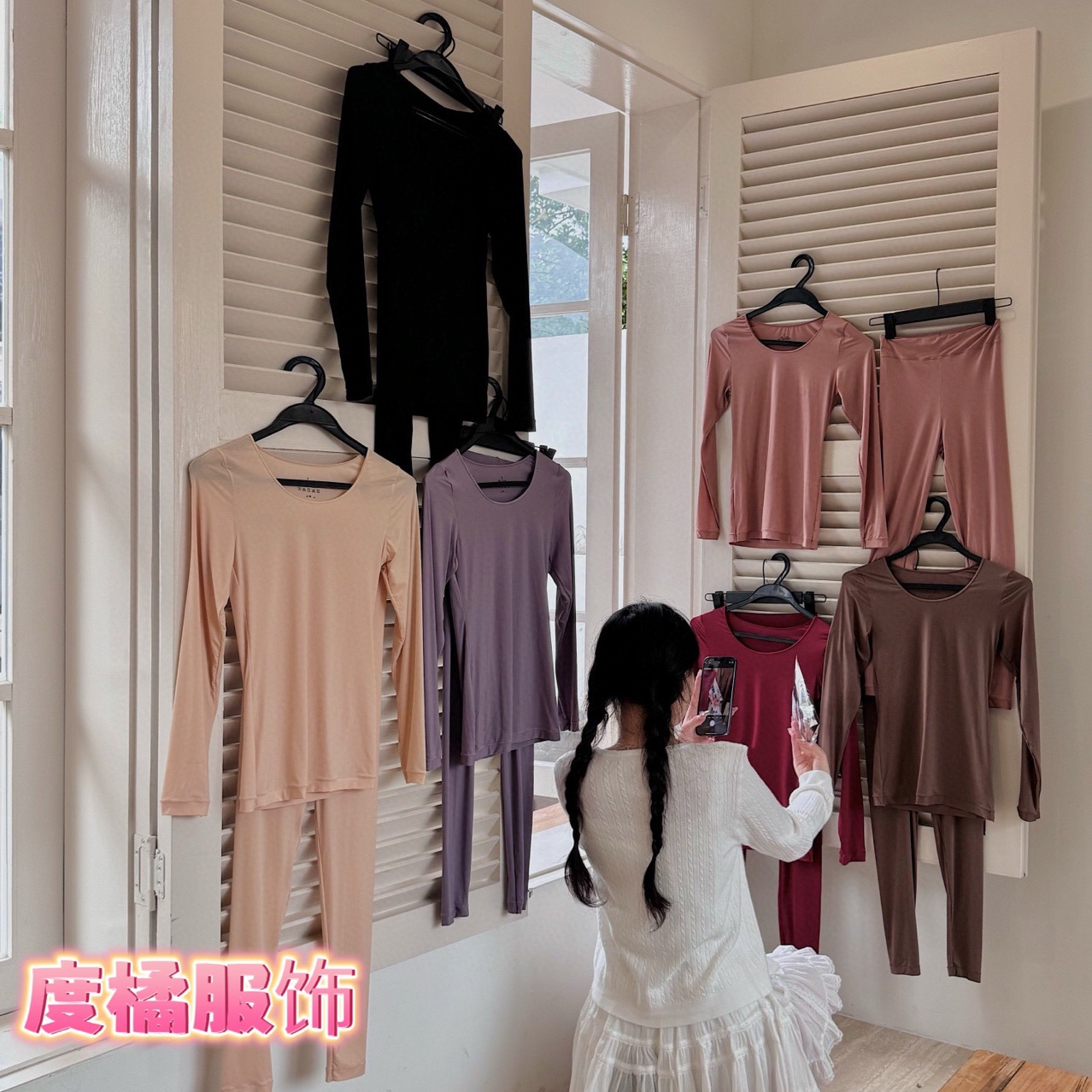 超薄型インビジブルマスク保温下着女性用秋物レディース秋服秋パンツセット女性用肌底美容服ベースレイヤー