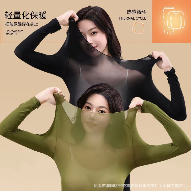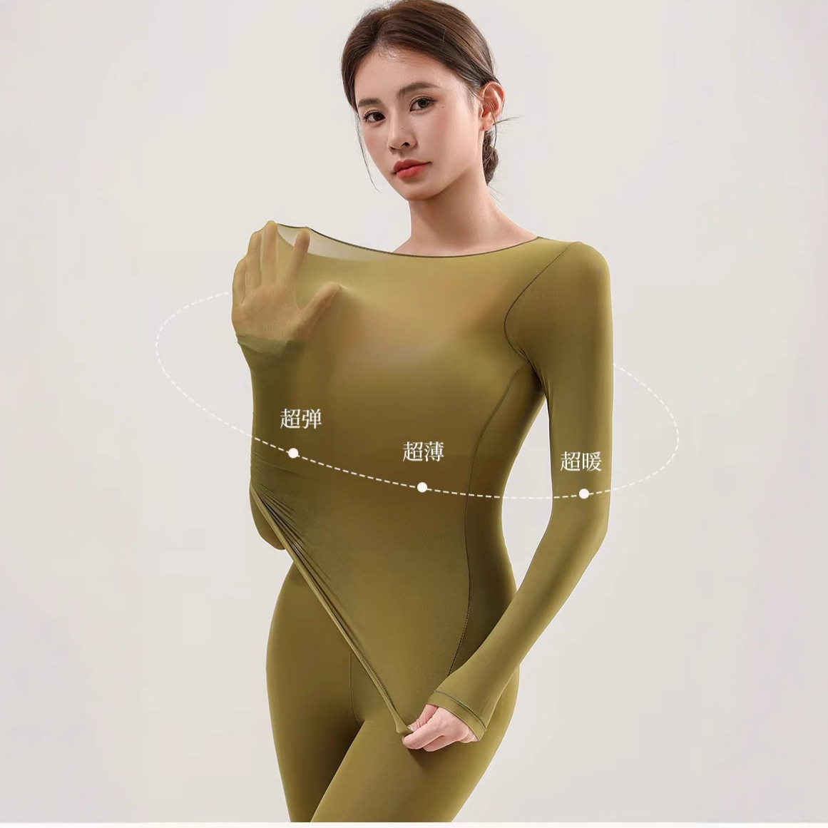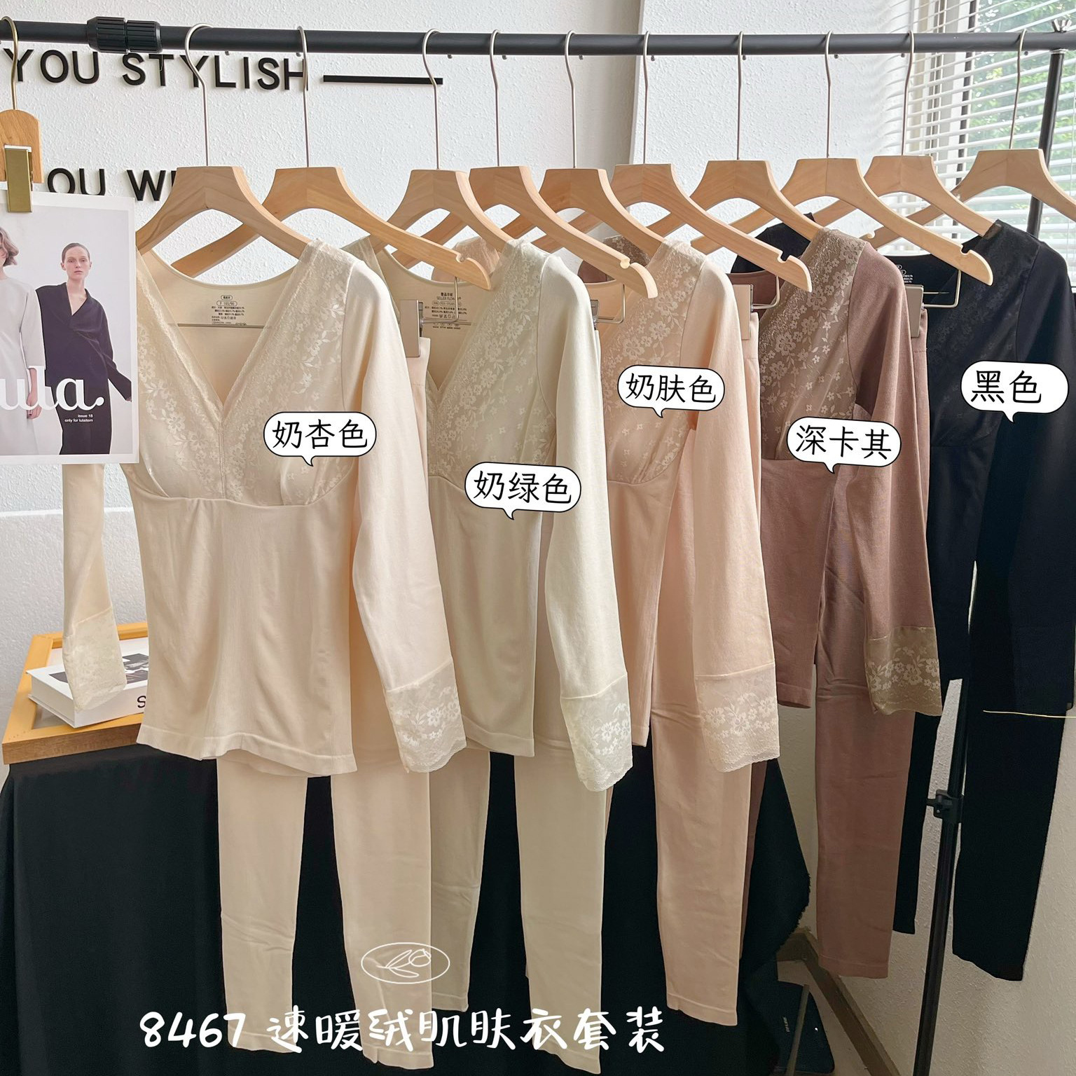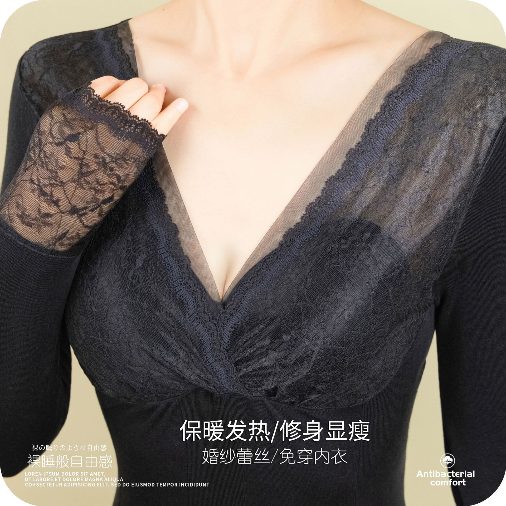 2024秋冬正規版保温肌底服レース深v防走光美肌服セット超薄高弾保温服