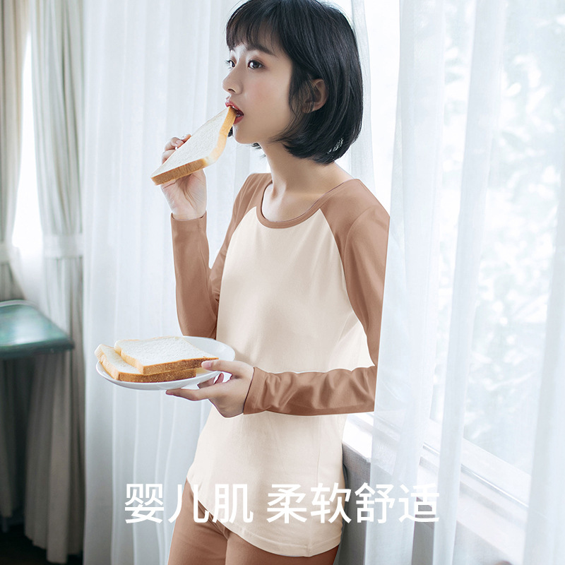 ヒアルロン酸潤肌保温長袖長ズボン発熱美肌マスク秋衣秋ズボン高弾底保温スーツ女