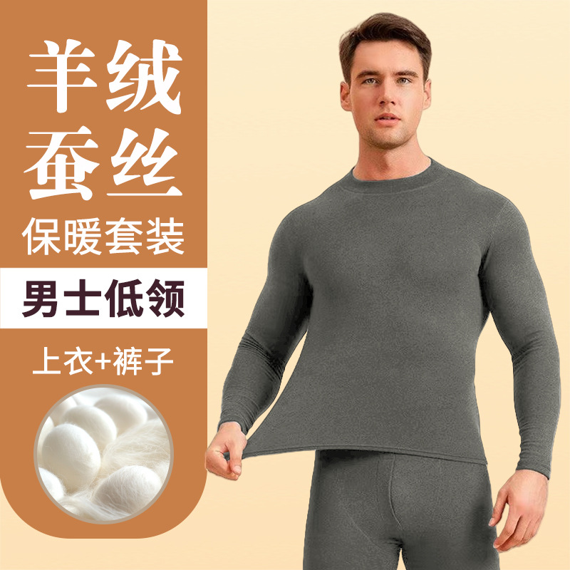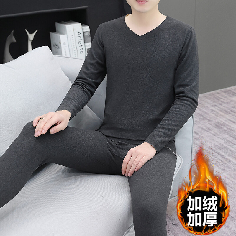 【カシミヤ絹糸】発熱徳絨毛秋冬男性保温下着男性セット加毛増厚秋衣秋ズボン