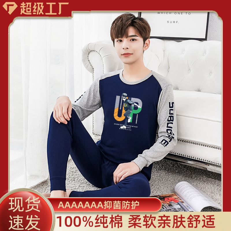 中大童純綿秋衣秋ズボン青少年男子学生保温下着セット純綿抗菌薄金オーダーメード