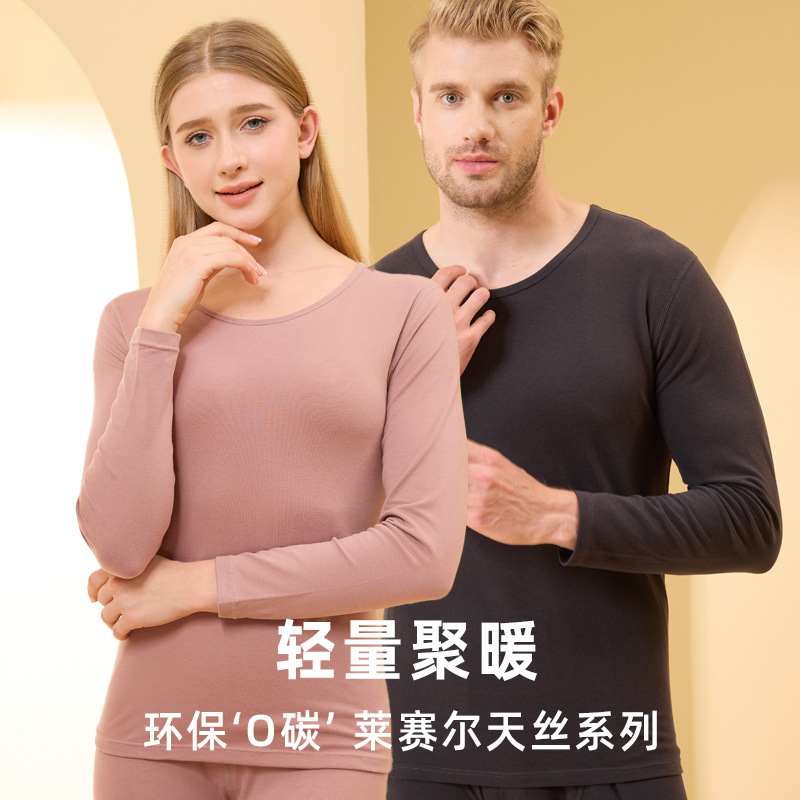 ライゼル天糸秋衣秋ズボンセット毛高弾丸首保温下着男性シャツ女性綿パジャマ