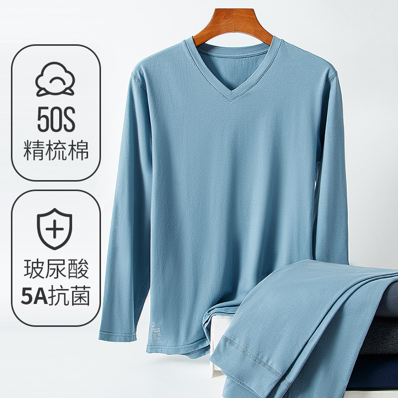 50sレカ綿秋衣秋ズボン男性スーツvネック薄金ヒアルロン酸抗菌秋冬女性保温下着
