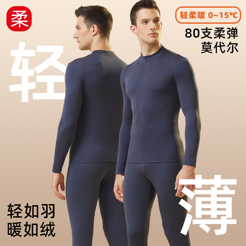 七匹狼丸襟徳絨毛秋衣セット男薄金修身純色男保温衣秋冬弾力男下着