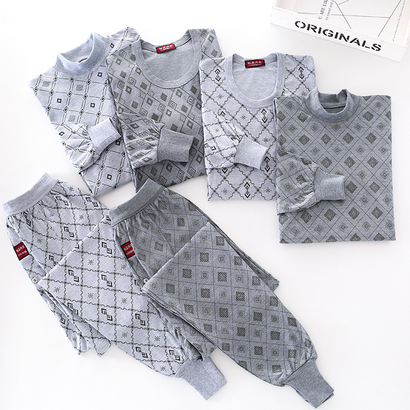 国内タイプの男性丸襟保温下着カジュアルファッションジャカード秋衣秋ズボン秋冬シャツ2点セット