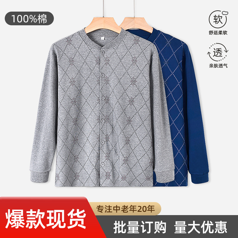 男性用秋服、純綿、暖かい、中高年向け、両開き、ゆったり、大きいサイズ、新作、綿100%、ボタン付き、高齢者向け長袖