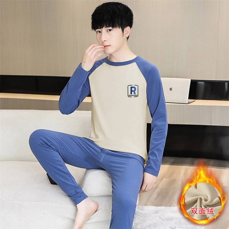 新しいベルベットの秋と冬のサーマル下着、男性、若者、学生、秋の服、秋のパンツスーツ、ホームウェア、ボトリングシャツ