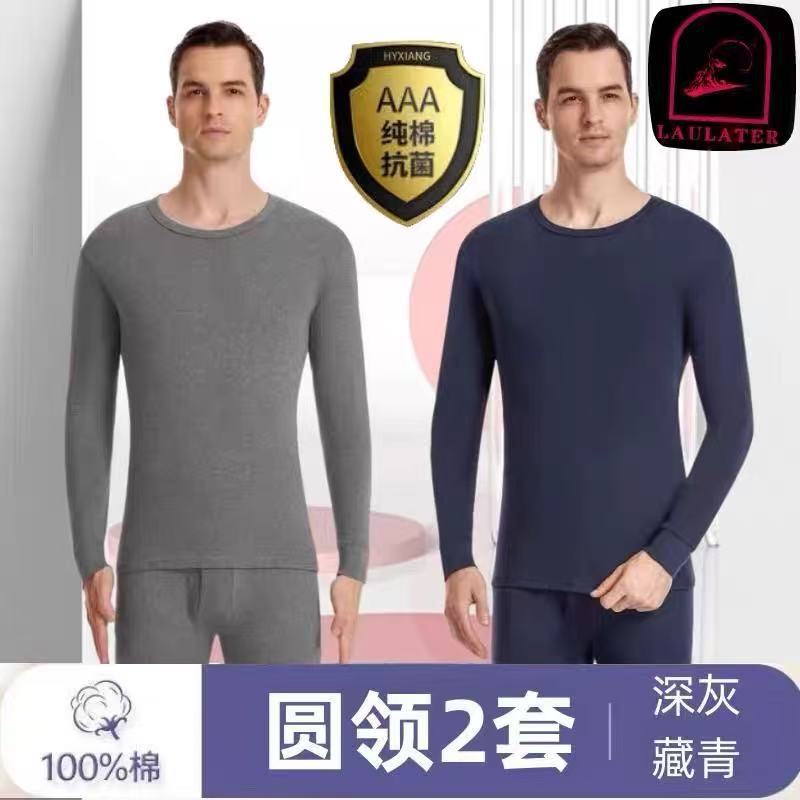 メンズ純綿秋服秋パンツ、丸首、綿100%セーター、薄手抗菌保温下着セット、卸売、厚手保温