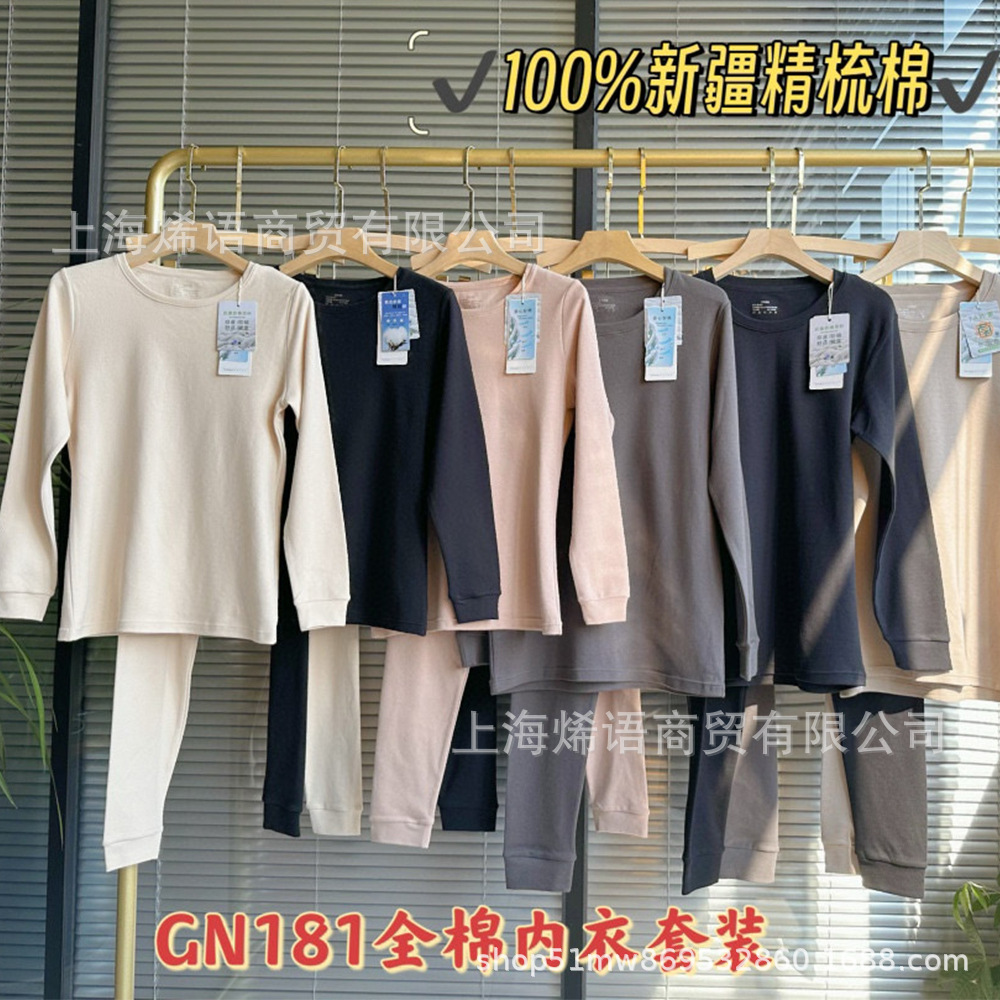 返品しない ~ 現物輸出単日系純色系精櫛M成人男女モデル秋冬保温下着セット