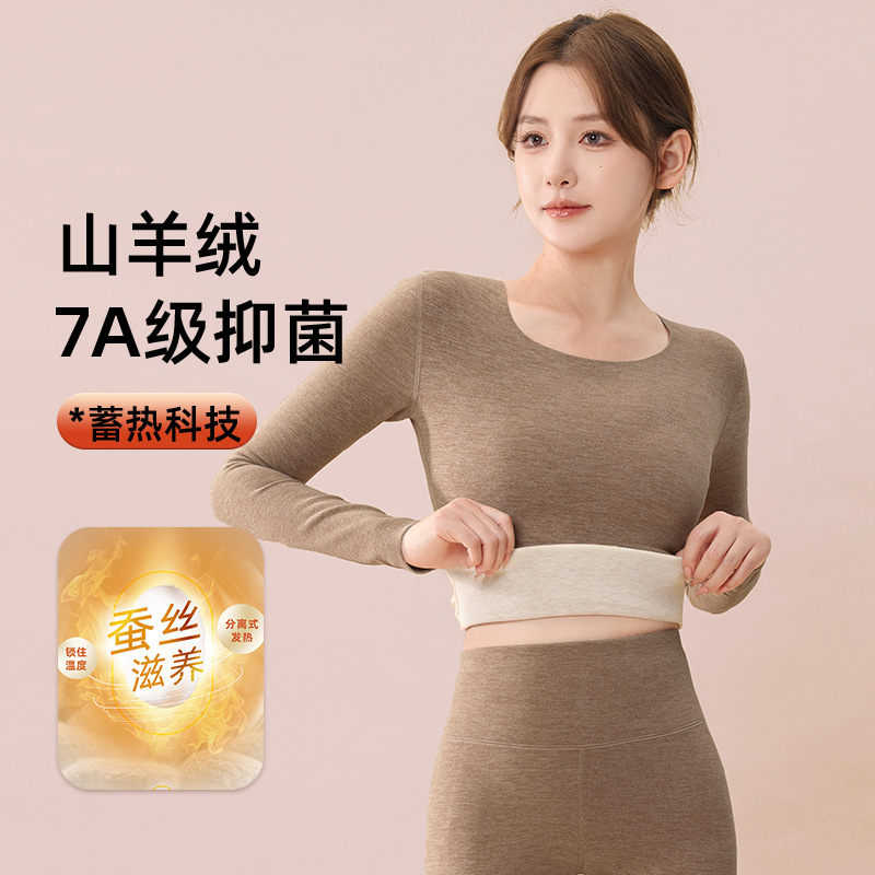 カシミヤシルク保温下着女性秋冬ベルベット無痕シャツ発熱徳パイル秋衣秋ズボンセット