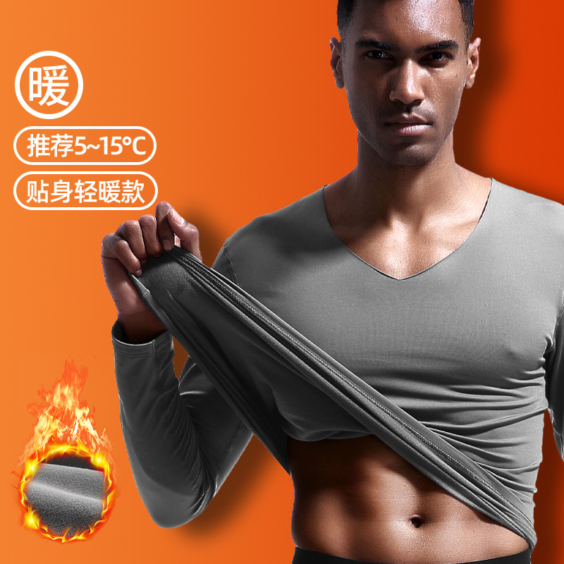 男性シルク発熱保温スーツ秋冬ベルベット厚手秋衣秋ズボン下着