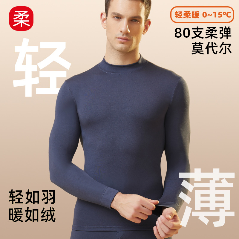 モーダル秋服と長ズボンセットメンズ大きいサイズタイトフィットサーマル下着超薄型春秋防寒ボトリングシャツ薄手