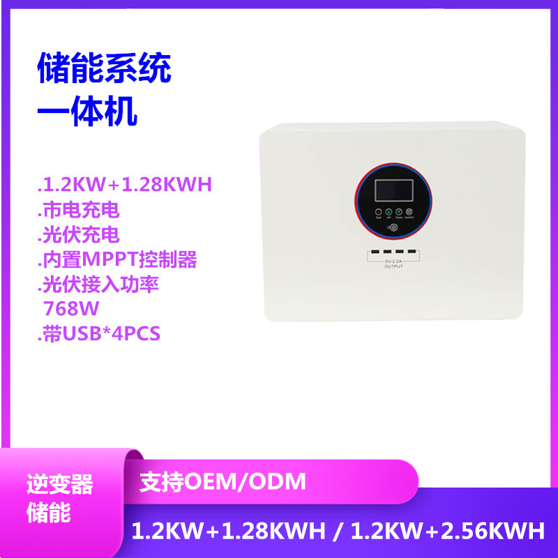 1.2KW/1.28KWHリチウム電池搭載の越境型太陽光発電家庭用蓄電一体機、オフグリッド太陽光発電蓄電システム