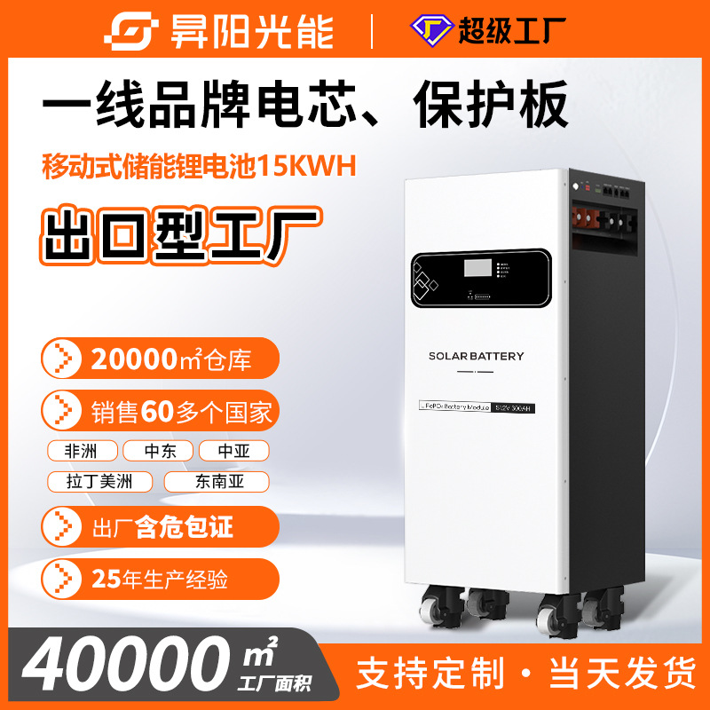 ホイール付きエネルギー貯蔵 51.2V 300AH リチウムリン酸鉄電池可動大容量長寿命