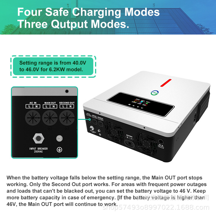 ハイパワー6.2KW純正弦波インバータ-太陽エネルギー貯蔵、高周波オフグリッド家庭用電源