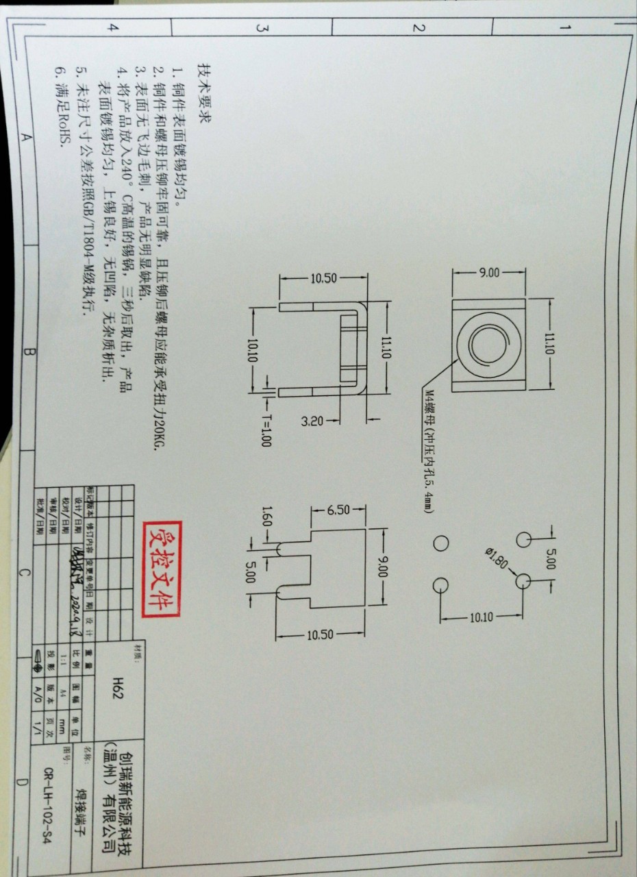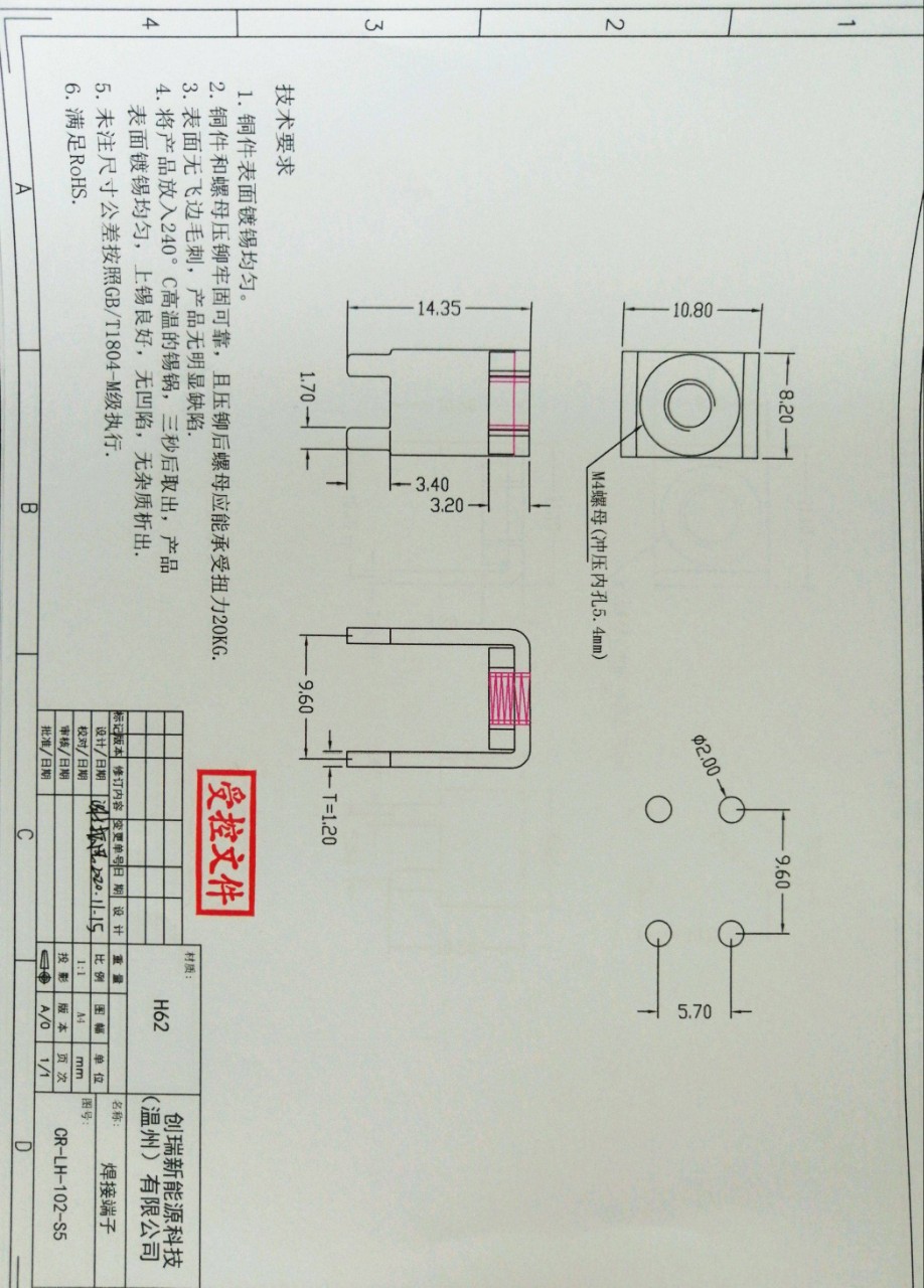 H62溶接端子CR-LH-102-S5リベット端子新エネルギー