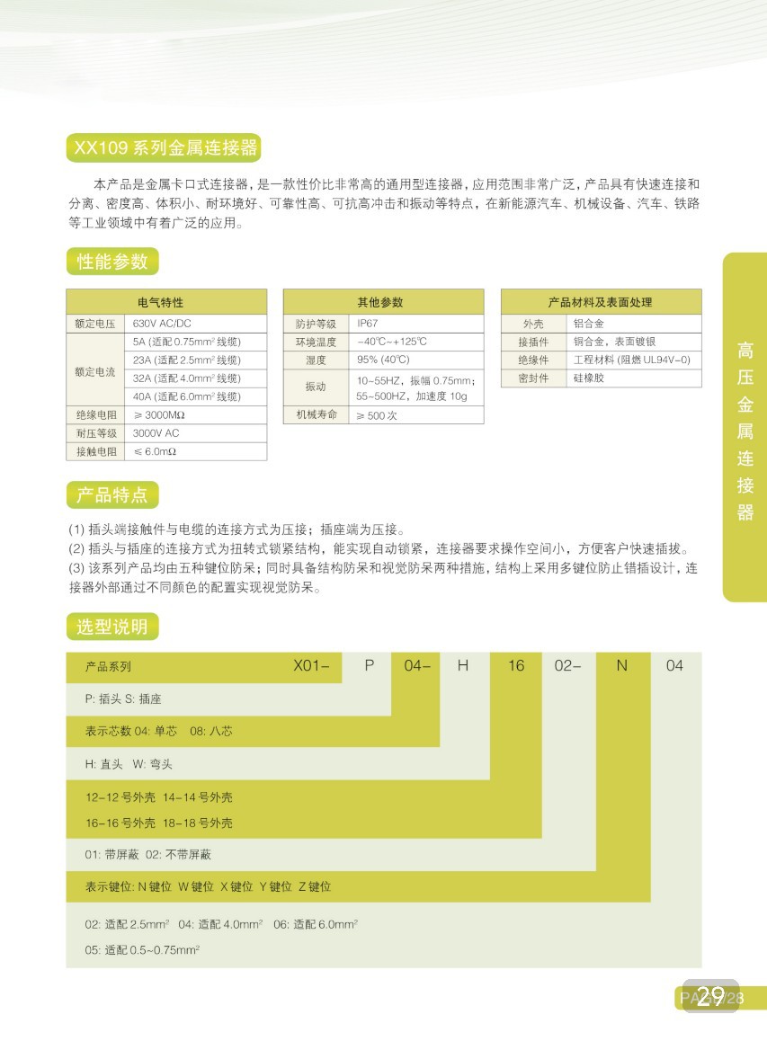新エネルギー端子高圧金属コネクタXX109