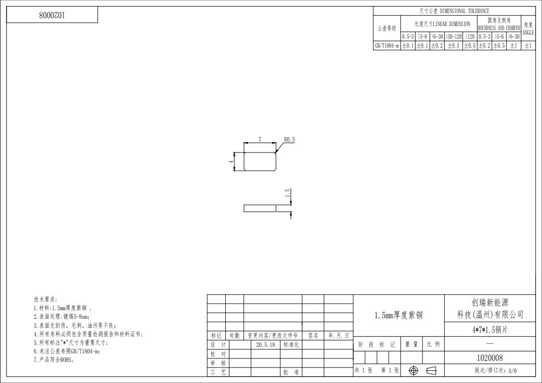 4 × 7 × 1.5小型銅片端子リベット端子新エネルギー1020008 1.5mm厚さ紫銅