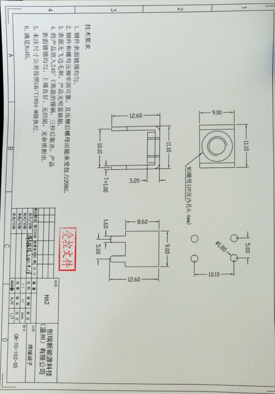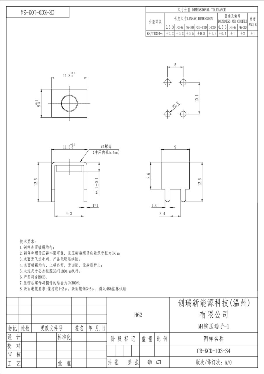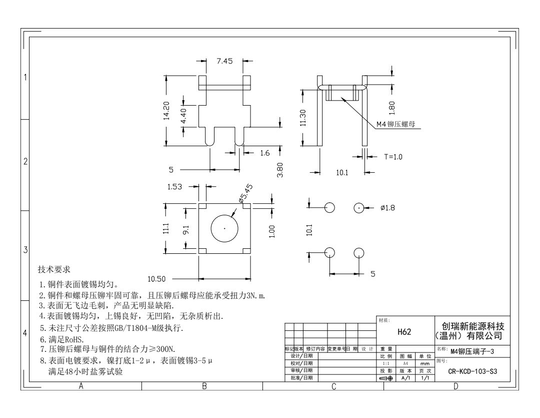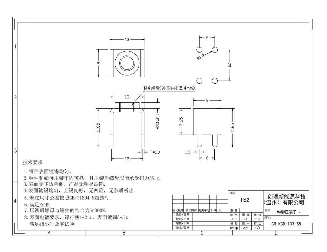 H62溶接端子CR-TC-102-S5リベット端子新エネルギー