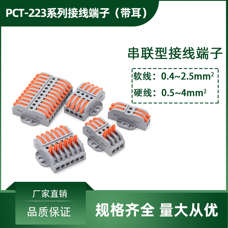 純銅端子台クイックコネクタ LED ライト照明配線コネクタ PCT-223 シリーズ (耳付き)