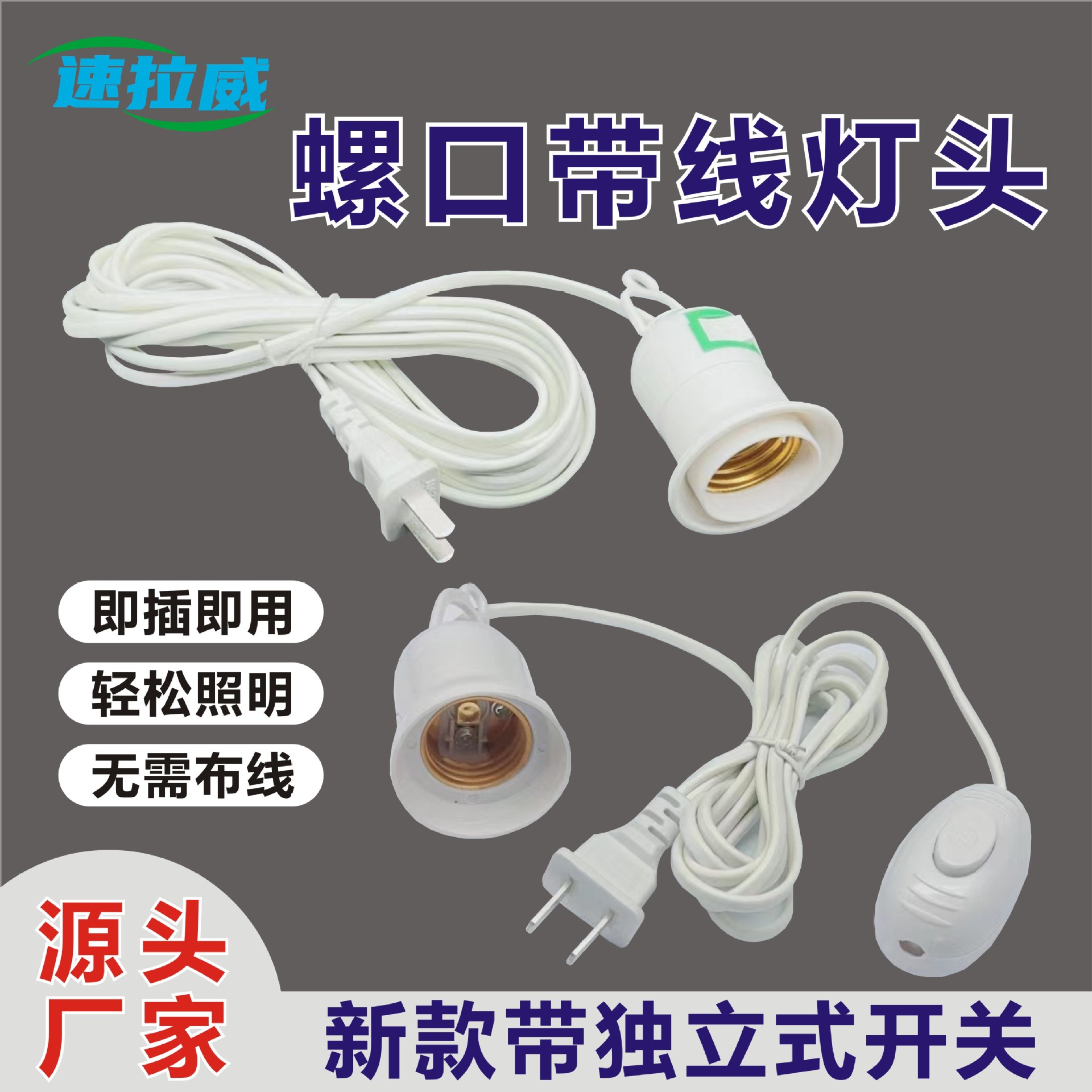 ランプヘッドE27ねじ口線付きスイッチ付き吊り下げ式LED電球夜灯ランプヘッド二差三メートル5メートル