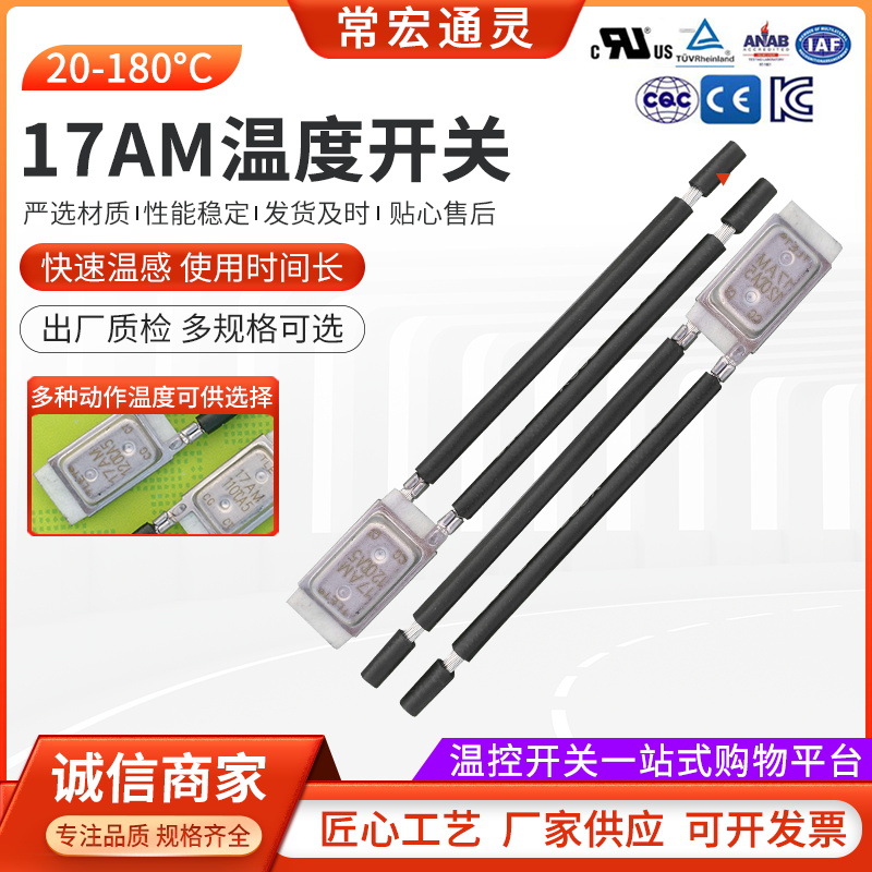 17AM大電流過熱保護器20-180度リチウムチェーンソーサーモスタット小型温度制御スイッチ