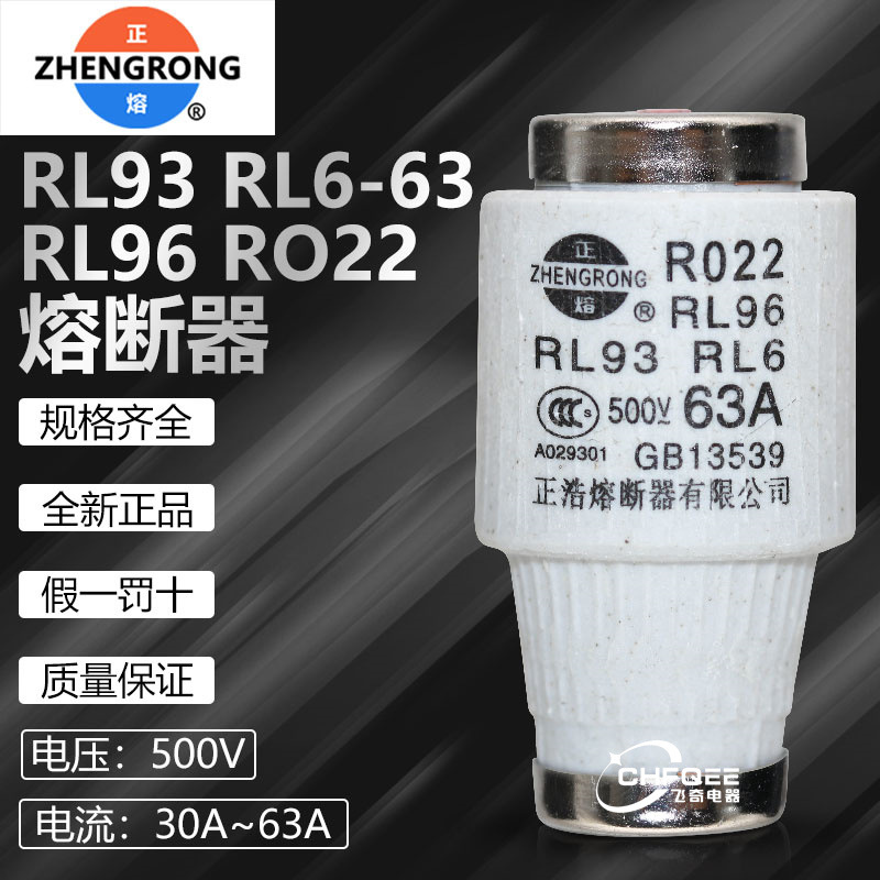 正浩ヒューズRL93 RL6-63 R022 500V 63A 50a 40a 35a 30a溶融コア保険