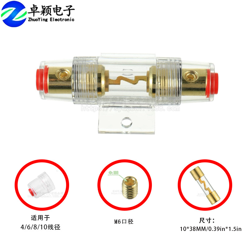 車載オーディオ改造専用AGU-H高品質金メッキヒューズホルダー10*38自動車保険胆60a