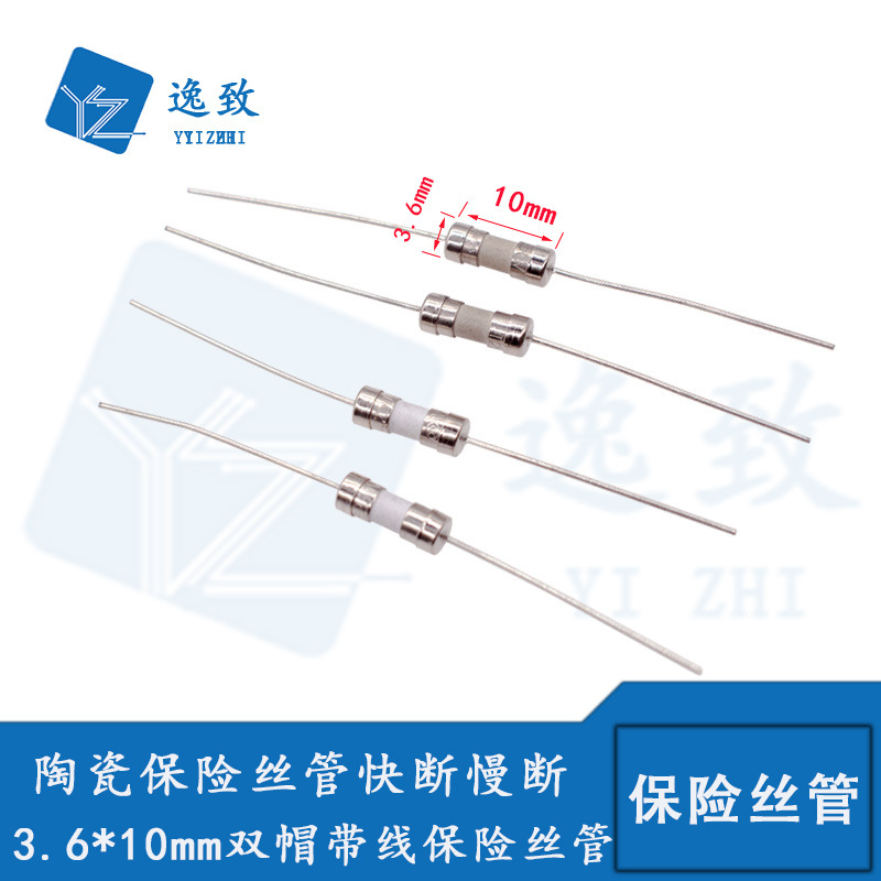 3.6x10mmセラミックヒューズ遅い溶解T0.2A-T20AクイックF0.2A-F20Aダブルキャップワイヤーチューブ付き