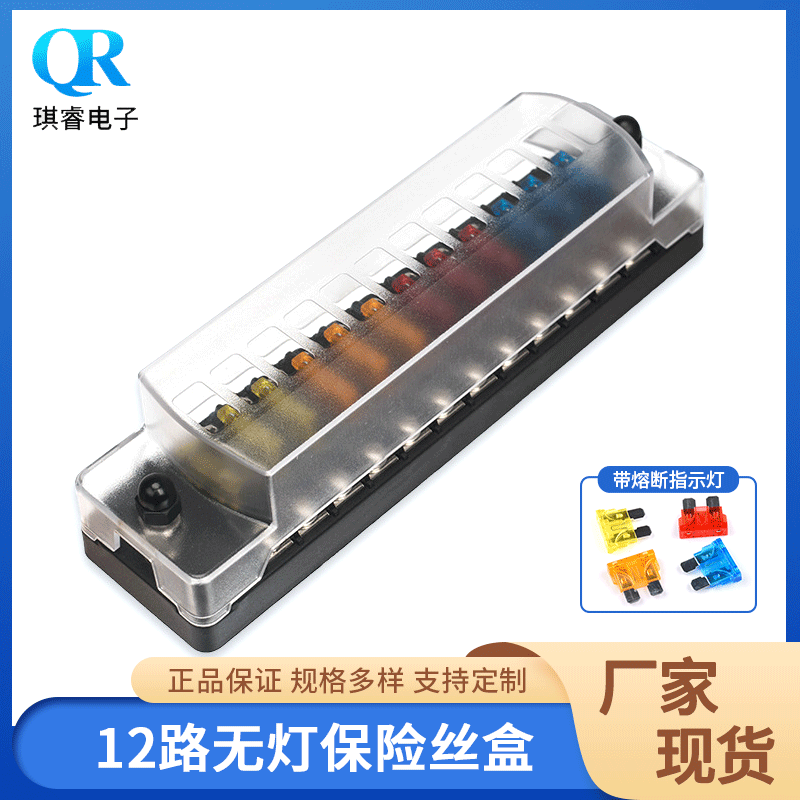 車用12ウェイヒューズボックス、独立した正極と負極の長いストリップ、ライトなし、LEDライト付き車用マルチウェイヒューズホルダー